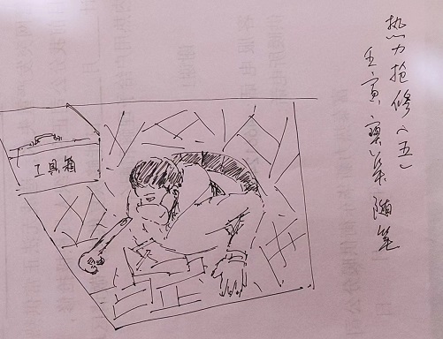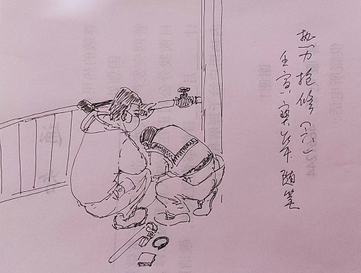 疫情來的突然,又趕上供熱初期,好多同事不能正常到崗,無形中加大了我們供熱的難度,為了讓廣大熱用戶能夠正常享受到溫暖,確保疫情期間供熱運(yùn)行安全平穩(wěn),我的同事們晝夜堅守崗位,嚴(yán)陣以待,高效率、高質(zhì)量的完成了管網(wǎng)突發(fā)故障的搶修任務(wù),為平穩(wěn)供熱消除了隱患,他們出現(xiàn)在最為艱苦,最危險的地方,卻沒有絲毫退縮,大家團(tuán)結(jié)一心,共度時艱。我被這些堅守一線的同事們深深感動,隨手用手邊稿紙畫了幾幅小畫想把這些感人的瞬間記錄下來,向親愛的同事們,向所有堅守一線防疫以及為了民生保障的工作者致敬!