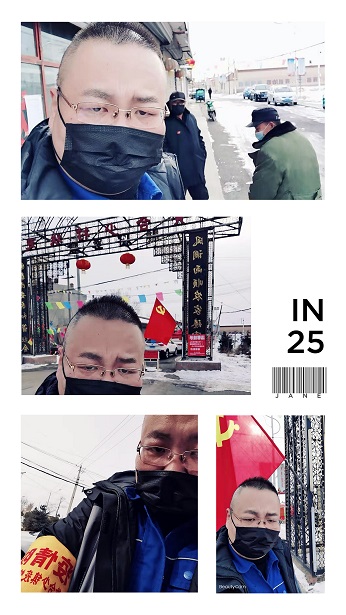 為了響應疫情防控工作的號召,管網(wǎng)公司黨員志愿者郭堅同志在完成公司值班后,第一時間參與到抗擊疫情工作中,從2月1日開始,配合賽罕區(qū)黃合少鎮(zhèn)西黃合少村疫情防控工作領導小組,對進入本村人員進行登記及測溫工作、配合村里網(wǎng)格化巡邏人員,對村里四個路口的封堵情況進行巡查,用他堅實的身軀守護在防控疫情的最前沿。他們防護設施簡陋,只有普通口罩和日常工作服,但為了人民群眾的生命安全, 他們不畏嚴寒、不顧個人安危,立足平凡崗位,默默堅守與付出,是英勇無畏卻又默默無聞的逆行者;他們始終把人民的利益放在第一位,舍小家為大家,勇于擔當、甘于奉獻,是不忘初心、牢記使命的踐行者。