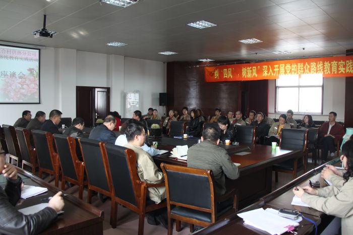 2014年3月24日,城發(fā)公司黨的群眾路線教育實(shí)踐活動(dòng)領(lǐng)導(dǎo)小組成員副總經(jīng)理史繼文、紀(jì)委書記寶音達(dá)來深入活動(dòng)聯(lián)系點(diǎn)三合村供熱分公司與職工群眾面對(duì)面開展征求意見活動(dòng),人力資源部部長(zhǎng)郄俊生、紀(jì)檢監(jiān)察室副主任王軍一同參加了征求意見活動(dòng)。公司領(lǐng)導(dǎo)與41名職工代表面對(duì)面,召開了意見征求座談會(huì),并深入運(yùn)營(yíng)二所,與20多名一線員工親切交流,認(rèn)真聽取了他們關(guān)于工作、生活上的意見和心聲。