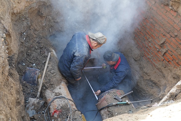 據(jù)悉,此次出現(xiàn)故障的是DN350管線,搶修需在泄水泄壓停暖的狀態(tài)下進(jìn)行,該管道為供水管道,管內(nèi)熱水溫度高達(dá)90多度,這也加大了搶修難度。"為確保此次受影響的65萬(wàn)平米熱用戶能夠及早恢復(fù)供熱,金橋分公司馬不停蹄地連夜施工,進(jìn)行搶修。"王永彪說(shuō)。