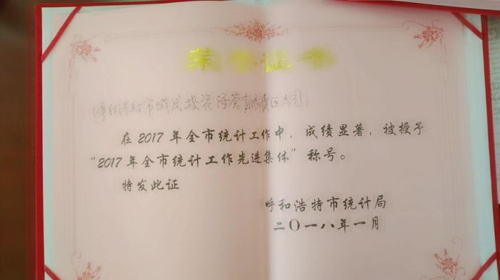 今年,市統(tǒng)計(jì)局對2017年全市統(tǒng)計(jì)工作先進(jìn)集體進(jìn)行了表彰,城發(fā)公司被授予
