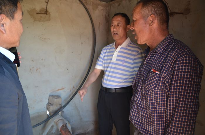 在黃羊渠村委會主任的帶領(lǐng)下,張永一行實地查看了位于色登渠、小前地、色登營盤、東官井四個自然村的五眼灌溉深井,詳細了解了每一眼井的狀況,對應(yīng)登記了需要重新清洗井,更換電表、水泵,配置電表箱,分設(shè)電表等維修項目。同時,實地查看了該村急需修三條共計約4公里的土路,初步確定修成砂石路。