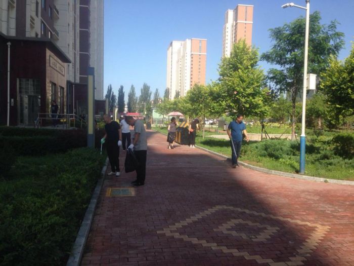 客服提升小組在小區(qū)明顯位置擺放展臺和宣傳畫,向業(yè)主征詢服務(wù)滿意度,發(fā)放關(guān)于消防安全等宣傳單;保潔綠化小組成員配合小區(qū)全體保潔人員開展清掃環(huán)路衛(wèi)生、撿拾草坪內(nèi)的垃圾、清洗垃圾箱等衛(wèi)生清潔工作;工程提升小組成員對金城小區(qū)的單元門開啟不靈、關(guān)閉不嚴(yán)等問題進(jìn)行了現(xiàn)場維修。