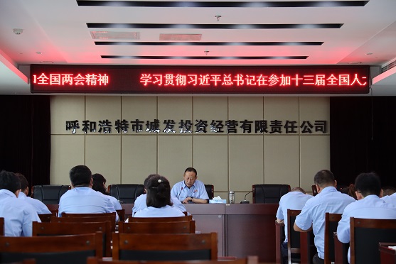 會(huì)上,張永同志結(jié)合近期在呼市黨校學(xué)習(xí)的成果,聯(lián)系城發(fā)公司扎實(shí)做好“六穩(wěn)”工作,全面落實(shí)“六保”任務(wù),引導(dǎo)公司各族干部職工學(xué)習(xí)貫徹全國(guó)兩會(huì)精神和習(xí)總書(shū)記在參加十三屆全國(guó)人大三次會(huì)議內(nèi)蒙古代表團(tuán)審議時(shí)重要講話精神上見(jiàn)思想、見(jiàn)行動(dòng)、見(jiàn)實(shí)效上下功夫,營(yíng)造濃厚的學(xué)習(xí)氛圍。以習(xí)總書(shū)記講話中從政治的、全局的、戰(zhàn)略的角度,闡述以人民為中心的發(fā)展思想,鮮明提出了堅(jiān)持人民至上、緊緊依靠人民、不斷造福人民、牢牢植根人民的政治要求和實(shí)踐要求。通過(guò)“煤改氣”“散煤治理”、“農(nóng)村供熱改造”等具體措施,打好藍(lán)天保衛(wèi)戰(zhàn),在實(shí)踐中踐行國(guó)企社會(huì)擔(dān)當(dāng),努力造福首府人民。