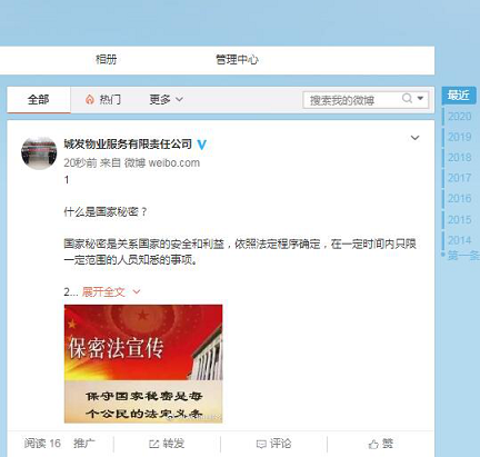 此外,公司還充分運用電子顯示屏、微博等媒介宣傳、普及保密法律法規(guī),把保密和密碼宣傳教育工作延伸到廣大群眾中去,努力樹立保守國家秘密人人有責(zé)的意識和國家觀念。