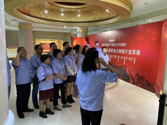 在博物院二樓展廳內(nèi),黨支部書(shū)記郭依群同志率先帶領(lǐng)大家重溫入黨誓詞,銘記初心使命,并齊聲高唱《沒(méi)有共產(chǎn)黨就沒(méi)有新中國(guó)》紅歌,表達(dá)愛(ài)國(guó)愛(ài)黨的熱烈情懷。隨后在講解員的帶領(lǐng)下大家認(rèn)真聆聽(tīng)學(xué)習(xí)了革命先輩的光輝事跡,一幅幅生動(dòng)的照片、一件件厚重的實(shí)物、一個(gè)個(gè)感人的故事,無(wú)不再現(xiàn)了中國(guó)共產(chǎn)黨人百年奮斗的不屈精神和輝煌成就。