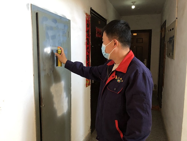 活動中,黨員與志愿者分工協(xié)作,配合默契,利用小鏟、噴漆等工具,對樓梯臺階、居民入戶門周邊墻面的“小廣告”進行了遮蓋清理;向過往居民發(fā)放宣傳單、入戶宣傳創(chuàng)建文明城市的重要意義、引導居民主動整理樓道堆放的雜物。